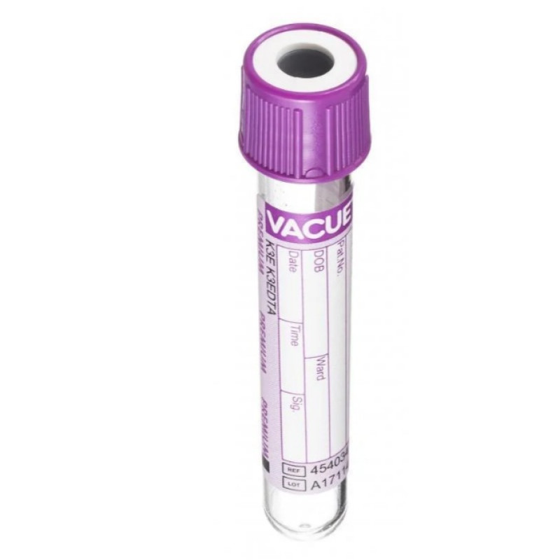 Пробірки VACUETTE® для гематологічних досліджень цільної крові з К2 ЕДТА. Еритроцити, тромбоцити та лейкоцити в пробі з ЕДТА стабільні до 24ч.