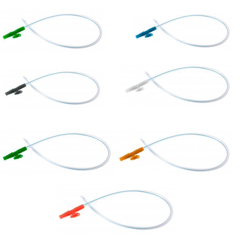Строение катетера (зонда) аспирационного. Зонд отсасывающий Alexpharm состоит из гибкой прозрачной трубки длиной 45 см с рентгенконтрастной полосой на боковой поверхности. Дистальный конец трубки открыт и закруглен, имеет 2 боковых латеральных отверстия, одна из которых скошена под углом. Проксимальный конец трубки снабжен универсальной канюлей с переходником типа Kapkon для соединения с хирургическим отсасывателем (вакуум-аспиратором) разного типа. Клапан контроля (канюля) имеет цветную кодировку и позволяет регулировать степень создаваемого разрежения с помощью прижимания пальцем отверстия клапана.