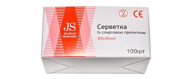 Салфетки со спиртовой пропиткой JS 30х65мм