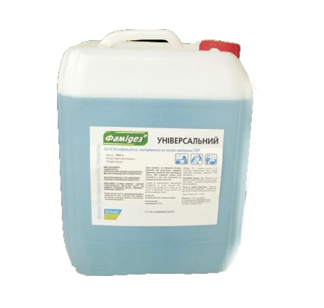 Фамидез® Универсал ― нейтральное средство для мытья и дезинфекции изделий из пластика, металла, керамики, текстиля, тканей, окрашенных и пластиковых поверхностей, стекла, нержавеющей стали, керамики.